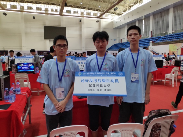 10月19日至20日,第5届CCPC中国大学生程序设计竞赛在厦门举行,来自全国169所高校的238支队伍同场竞技,双一流高校悉数参加。计算机学院在8月底举行的网络赛中从2500多支队伍中脱颖而出,进入全国赛,经过两天智力与体力的现场激战,面对来自全国包括清华大学、北京大学、复旦大学、上海交通大学、南京大学、浙江大学等在内许多名校计算机顶尖人才,由张咏乐、夏康、唐清仙三位同学组成的“还好没考后缀自动机”队在教练景国良老师带领下戒骄戒躁,勇于拼搏,最终勇夺银奖,这是我校获得的第一枚CCPC银奖,实现了历史性的突破。