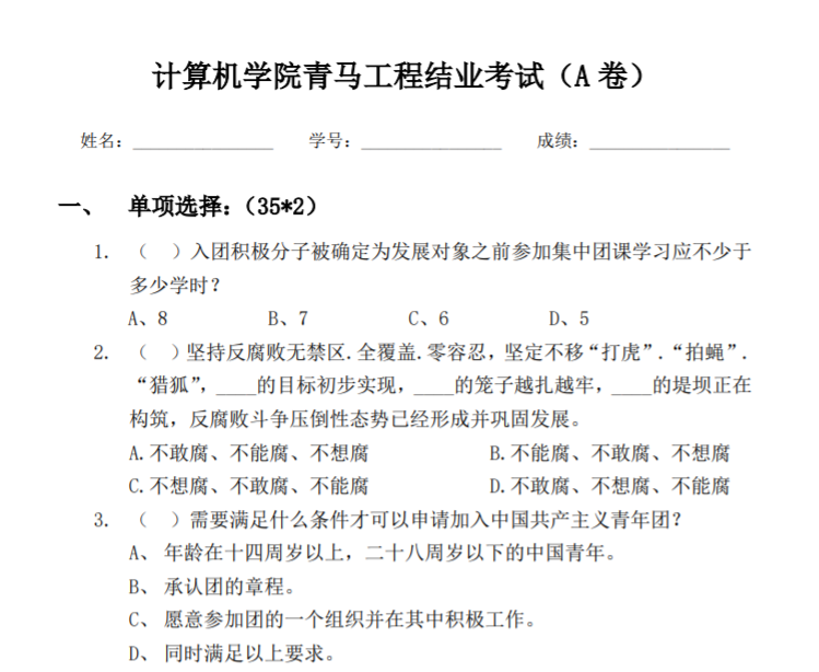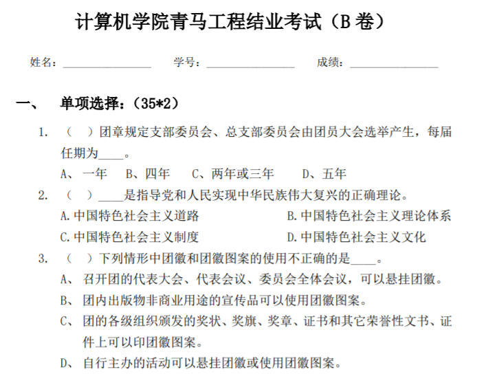 本次活动主要分为两个部分。首先由青马学员进行笔试答题,对往期的青马培训学习进行阶段性检测。考试题目选自共青团干部应知应会及百年党史相关知识,充分符合青马工程是为党培养信仰坚定、能力突出、素质优良、作风过硬的青年政治骨干的培养要求,综合考验了学员们的政治品格与理论功底。