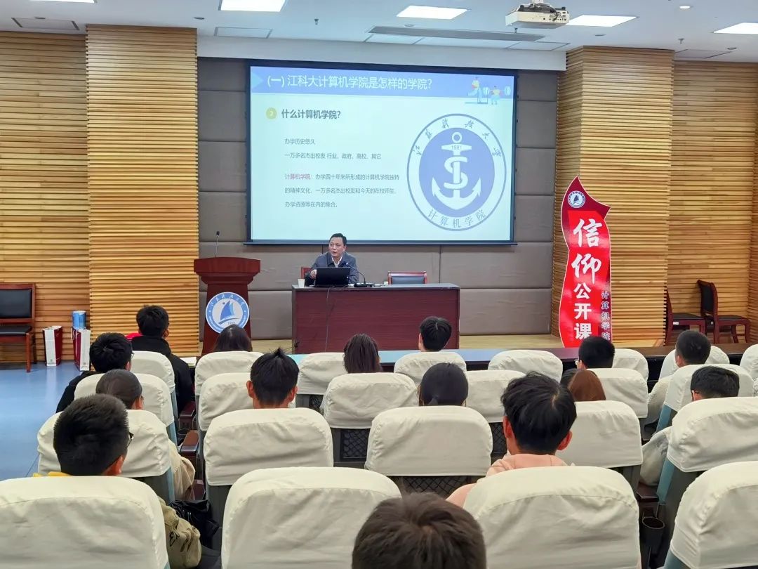 韩书记讲述了学校、学院的发展史,介绍了一批遍布在全国各地的优秀校友,这一群人正是江科大“船魂精神”的代表人物。2021年是计算机学院成立的四十周年,他对在座的青年学生们寄予了深厚期待,希望他们奋发图强,绽放出江科大计算机学子们独特的风采。