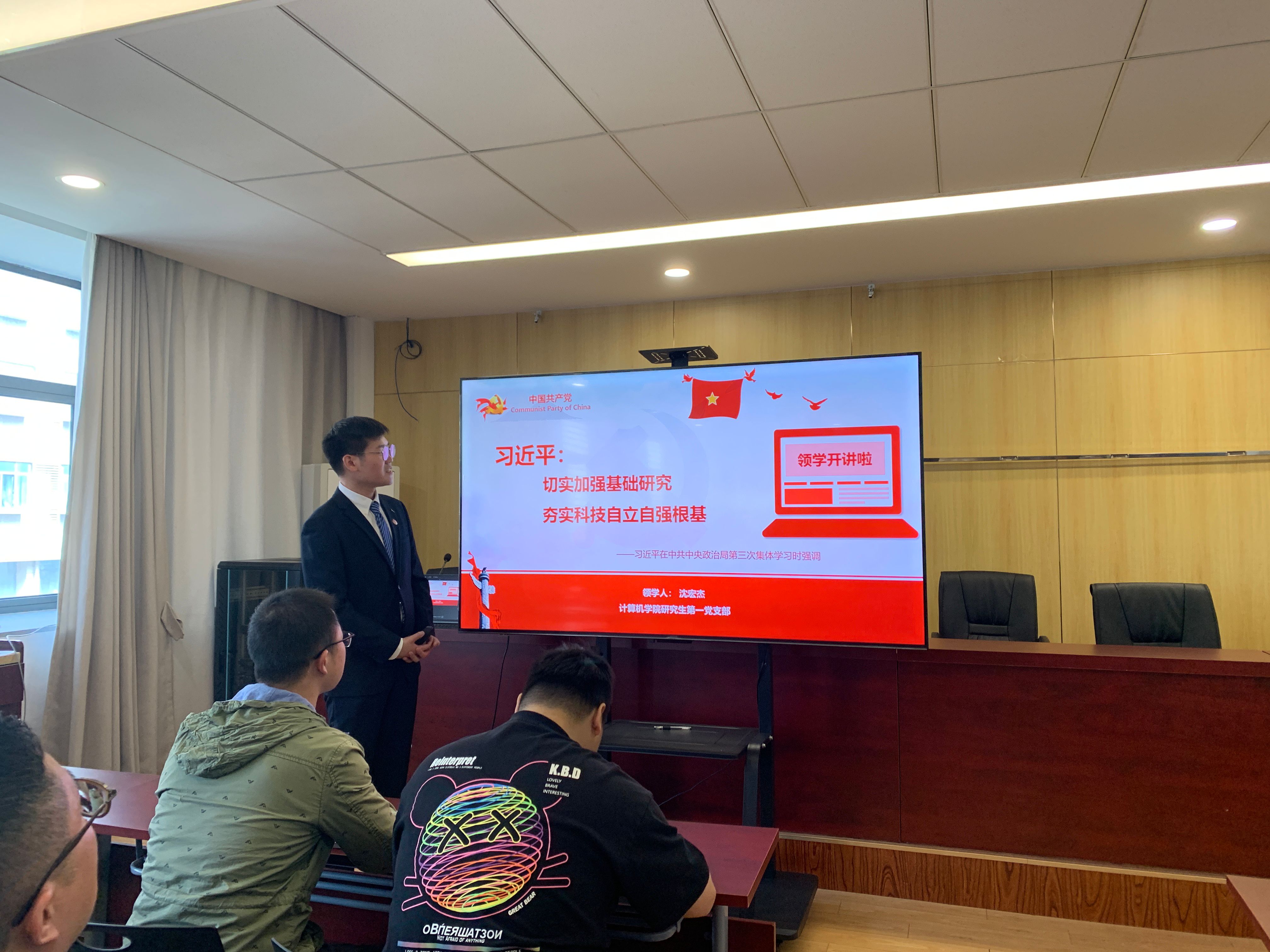 基础教学部及实验中心党支部于萧榕同志表示:“中共中央总书记习近平在中共中央政治局第三次集中学习时强调,加强基础研究是实现高水平科技自立自强的迫切要求,是建设世界科技强国的必由之路。作为基础实验室,给学生提供计算机资源,要提供多元化的服务,除了机时、算力、仿生环境、负载等,也要为学生提供更多的服务,让学生有更多的创新环境”。