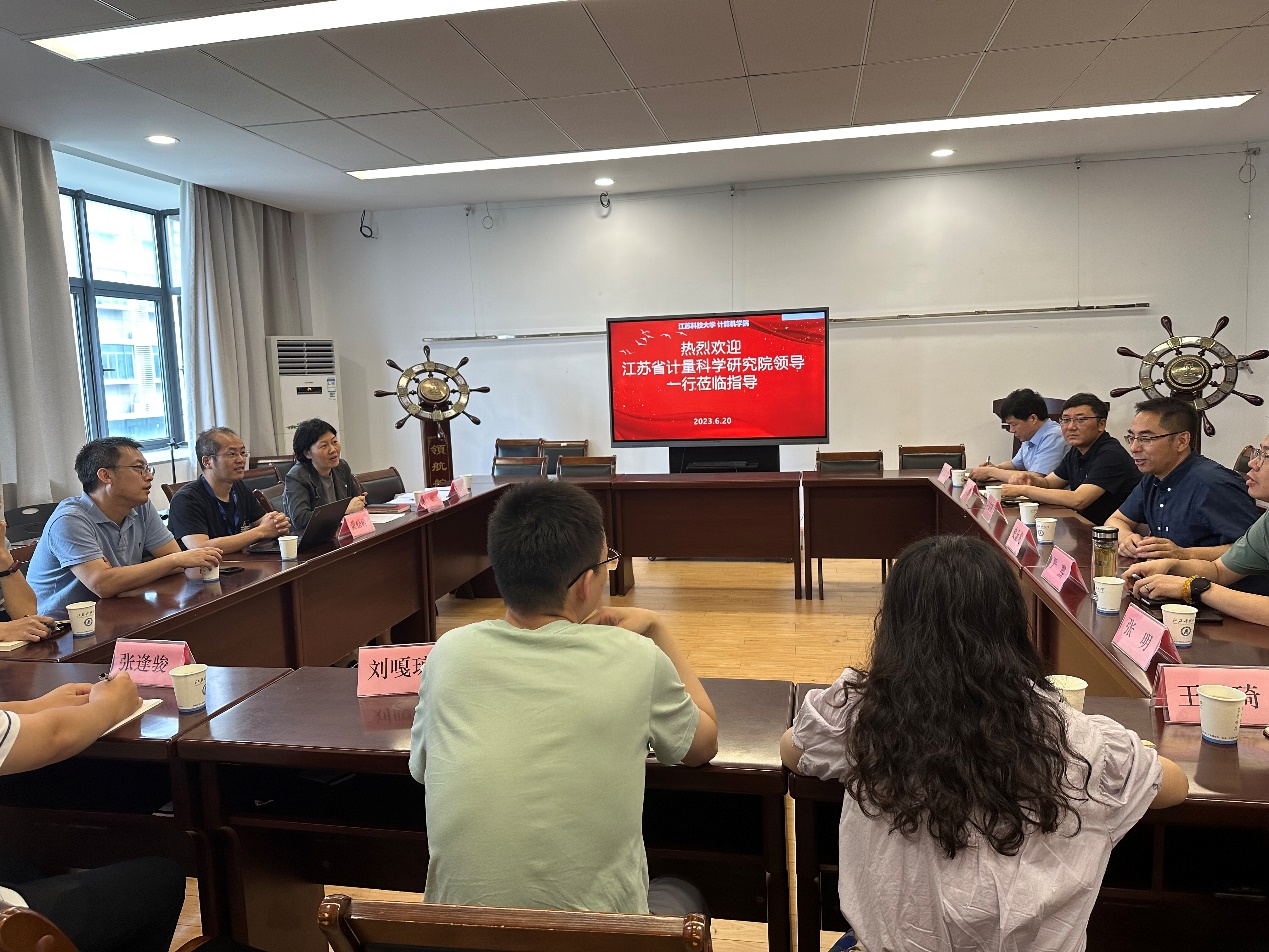 史金龙首先对江苏省计量科学研究院各位领导的到来表示热烈欢迎,并介绍了计算机学院的与会人员以及计算机学院的基本情况。唐颖部长介绍了江苏省计量科学研究院的情况。