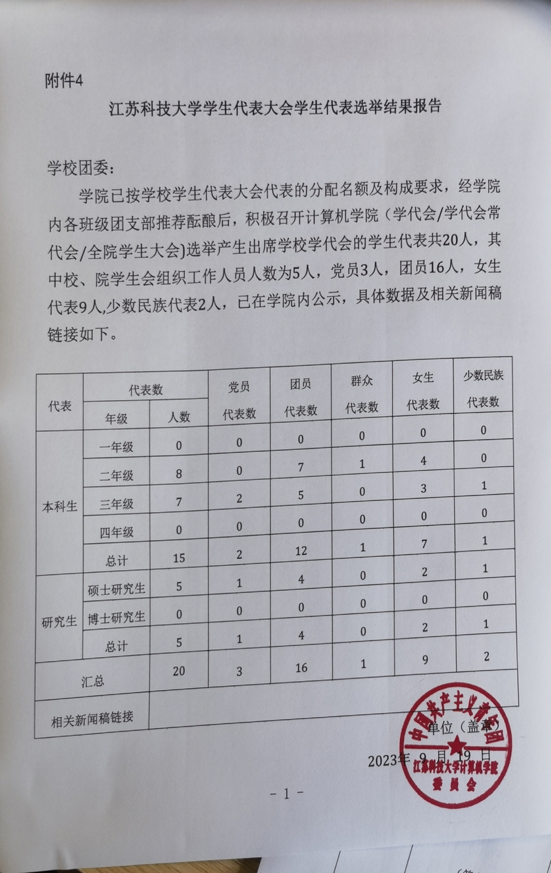 江苏科技大学学生代表大会计算机学院学生代表选举结果公示