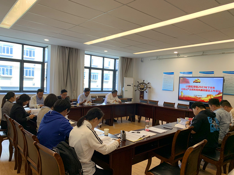 10月16日上午,计算机学院党委召开了2023年下半年全面从严治党和党风廉政建设工作会议,学院党政领导及支部书记参加。会上,学院党委副书记、纪检委员吴健康带领大家重点学习了《习近平对宣传思想文化工作作出重要指示》、《张忠在全省高校领导干部暑期学习培训班上强调:以全面从严治党引领保障高等教育事业高质量发展》等文件精神;传达了学校《关于开展第十六届“校园廉洁文化活动月”的通知》的内容,在学院范围内发起了廉洁文化月活动的广泛宣传及动员部署。