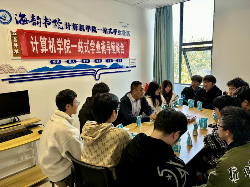 1120日,计算机学院副院长于化龙赴学生公寓3号组团“海韵书院”一站式学生社区开展学业指导座谈会,辅导员代表和各专业学生代表参加座谈。此次座谈会致力于倾听学生心声、回应学生关切、关注学生学业发展,旨在为广大学子提供一个解决学业困惑,获取学习经验的平台,从而调动学生学习积极性,培养学生自学能力,提高人才培养质量。