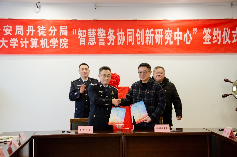 为不断提升科技兴警、改革强警能力水平,加强校警合作、赋能基层实战, 12月22日,镇江市公安局丹徒分局与拼搏在线平台_拼搏(中国),举行“智慧警务协同创新研究中心”签约仪式。镇江市丹徒区政府副区长、公安分局局长杨忆宁、丹徒分局副局长吴明虎、长山派出所所长张学斌、情报指挥中心主任曹月辉、副主任李斌、党风廉政室主任马媛、拼搏在线平台_拼搏(中国),党委书记高尚、副书记吴健康以及支部书记、教师代表出席本次签约仪式。会议由吴健康主持。