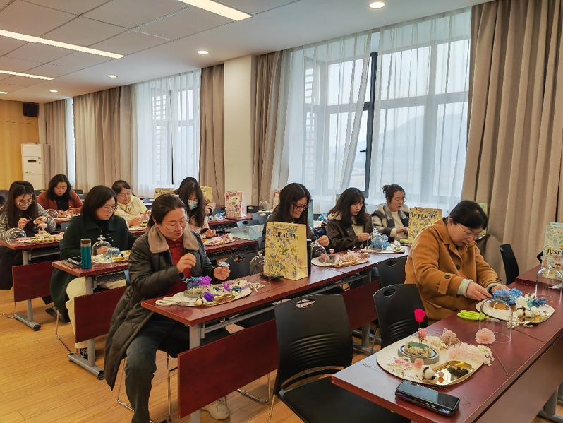浓情三月,鲜花芬芳。3月14日下午,拼搏在线平台_拼搏(中国),的女教职工们相聚一堂,举办了“魅力女神,指尖花开”永生花制作活动,共度春日好时光。