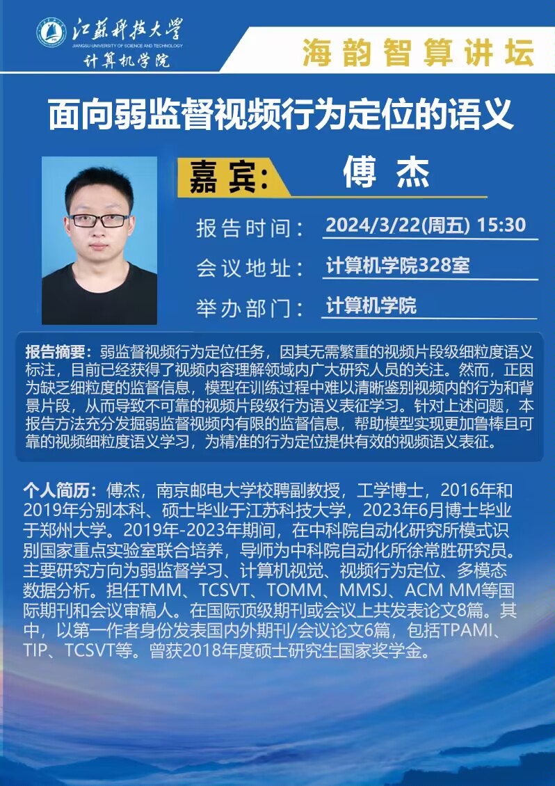 海韵智算讲坛:(傅杰)面向弱监督视频行为定位的语义