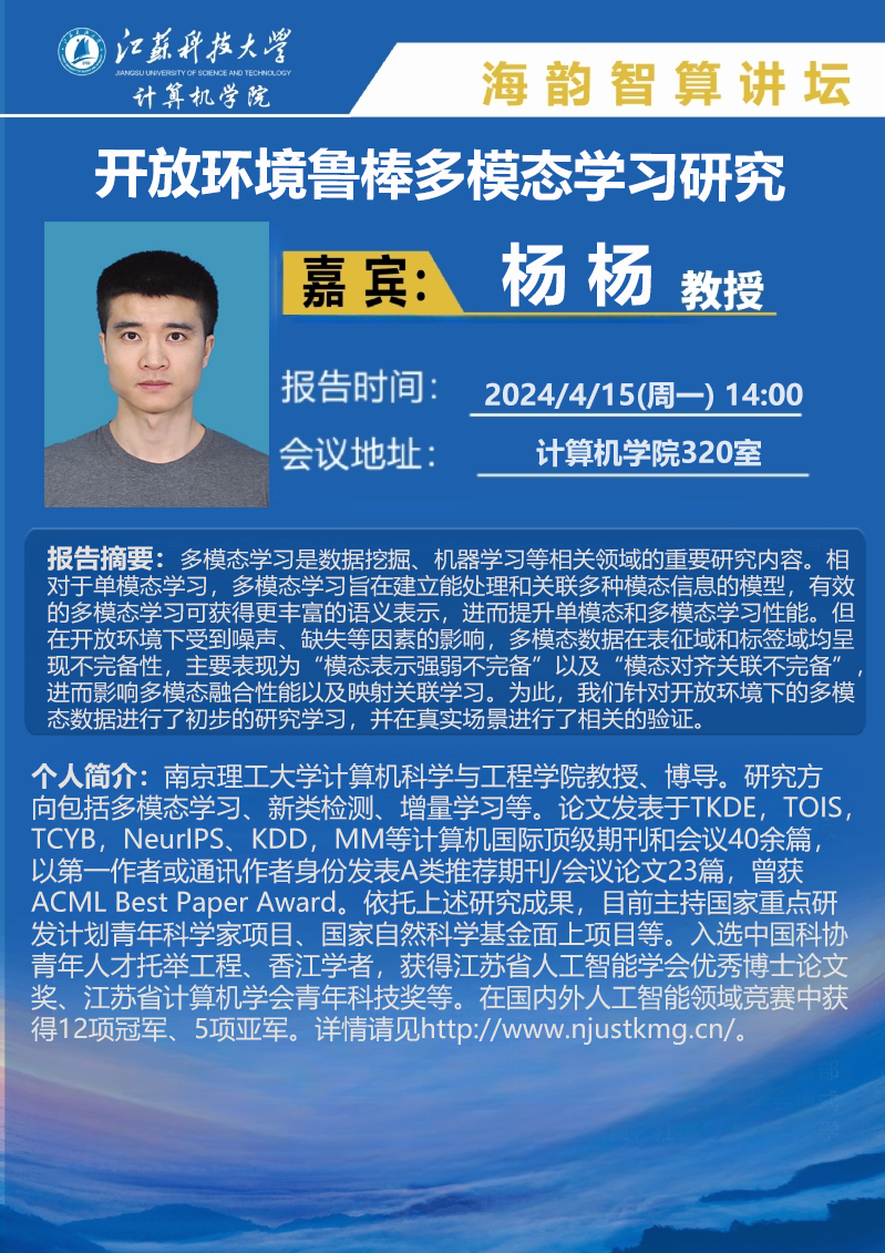 海韵智算讲坛:(杨杨)开放环境鲁棒多模态学习研究
