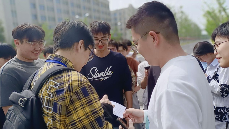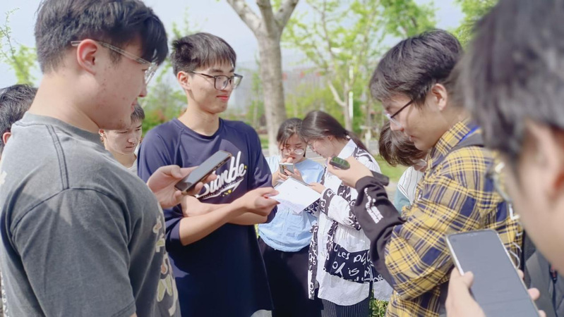紧接着来到粮食学院楼十字路口处,团队的同学们齐心协力,展示才华和智慧,思考回答着一道道有趣问题,进一步引发同学们的思考和探索。