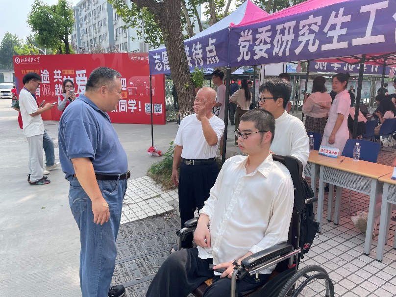 今年,徐佳楠通过自身的努力,顺利考取了本校计算机学院人工智能专业研究生。江苏科技大学党委常委副校长胡爱祥在报到现场慰问关心了徐佳楠及其家人。胡爱祥表示,学校将持续关注徐同学未来的学习和生活情况,学校将和家长们共同努力去克服解决徐佳楠学习和生活上的困难。一路以来,他从未停止“行走”,今天是他作为硕士新生报到的第一天,也是他追求更高理想的开始,他非常感激江苏科技大学一直以来的帮助,他相信在自己的自强不息和学校无微不至的关怀下一定能顺利完成学业。
