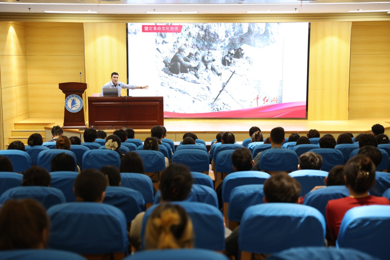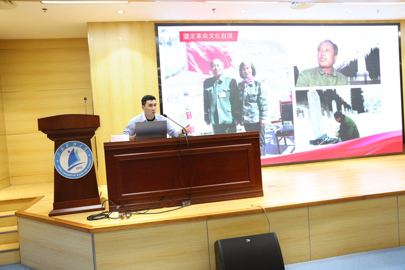 他分享了外婆绣毛主席画像的故事,让大家深刻感受到了老一辈人对伟大领袖的坚定信仰和对社会主义先进文化的自信。母亲带他参观乔尔玛烈士陵园的经历,让他对军人产生了特殊情感。2021 年,他光荣加入中国人民解放军空军,在军营中,他深刻体会到了解放军战士的使命与担当,铸牢中华民族共同体意识成为他奋斗的目标。
