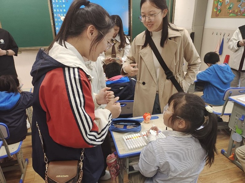 活动伊始,支部成员们走进特教中心,参观了学校的各个角落,与工作人员进行了深入交流,并学习了一些基本的手语表达,如“你好”、“谢谢”等,为接下来与聋哑儿童的沟通奠定了基础。这些简单的手语词汇,不仅将拉近双方的距离,更是在无声的世界里架起了一座理解与关爱的桥梁。