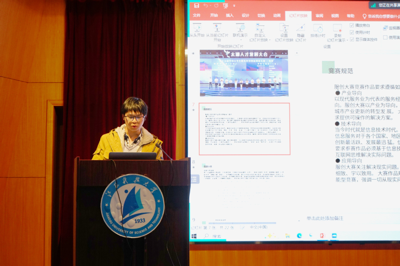 在分析行业现状的同时,束鑫老师还回顾了学校软件工程专业的发展历程。从2010年首次招生以来,该专业历经十余年积淀,不断优化教学模式,强化师资力量,取得了“江苏省一流专业”这一殊荣。束鑫老师表示,这离不开专业团队的辛勤付出和学生们的共同努力。通过先进的教学体系和丰富的实践平台,学校在为学生打牢编程基础的同时,也注重培养他们的创新能力和实践能力,助力他们在软件领域脱颖而出。