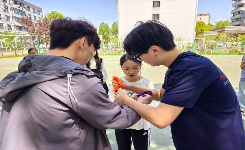 在寻宝游戏环节,同学们需要在学校规定区域内寻找藏有国家安全相关题目的白色纸盒。为了引导大家高效寻找,组织者明确了题目藏匿的大致范围:从学校西门至C14、C15区域。20分钟后,同学们在教三指定教室集合答题,每答对一题就能为所在小组积一分。活动现场,同学们热情高涨,在校园里穿梭寻找,充分展现出积极参与的态度。