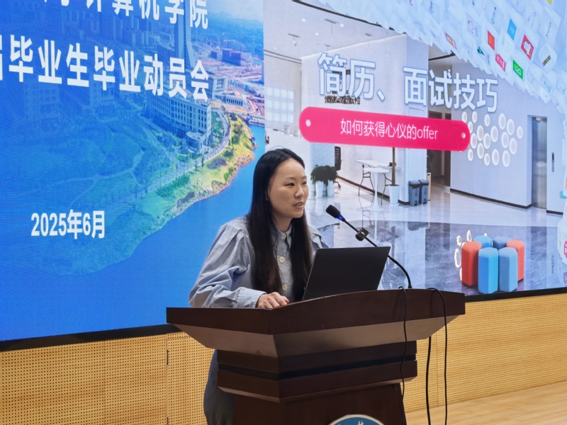 会议还邀请了2025届优秀毕业生代表分享求职经验。21计嵌专业的何付琦同学讲述了自己从投递简历到最终获得心仪offer的全过程,特别强调了持续投递、不断优化的重要性。她建议学弟学妹们:不要因为暂时的挫折而气馁,每一次面试都是成长的机会。