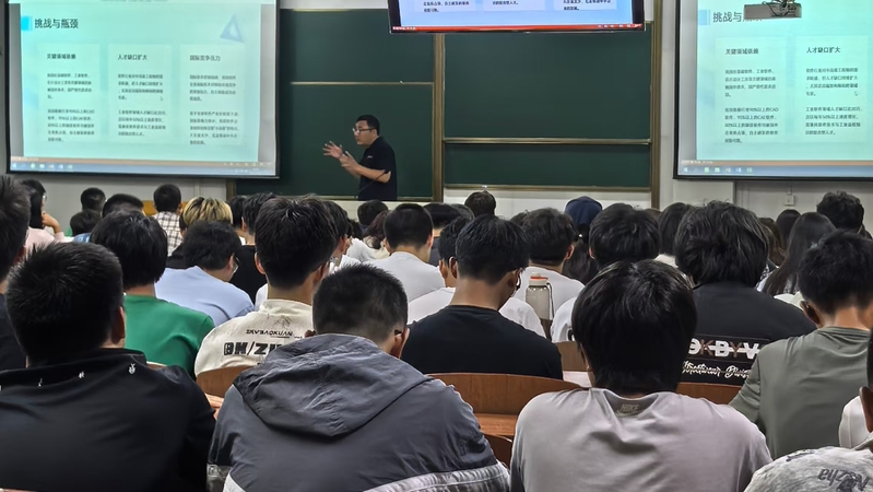 束鑫老师首先为大家介绍了学校软件工程专业的发展历程。从2010年首次招生以来,该专业历经十余年积淀,不断优化教学模式,强化师资力量,2021年获批省一流专业,2025年获批省级工业软件学院。束鑫老师表示,这离不开专业团队的辛勤付出和学生们的共同努力。通过先进的教学体系和丰富的实践平台,学校在为学生打牢编程基础的同时,也注重培养他们的创新能力和实践能力,助力他们在软件领域脱颖而出。